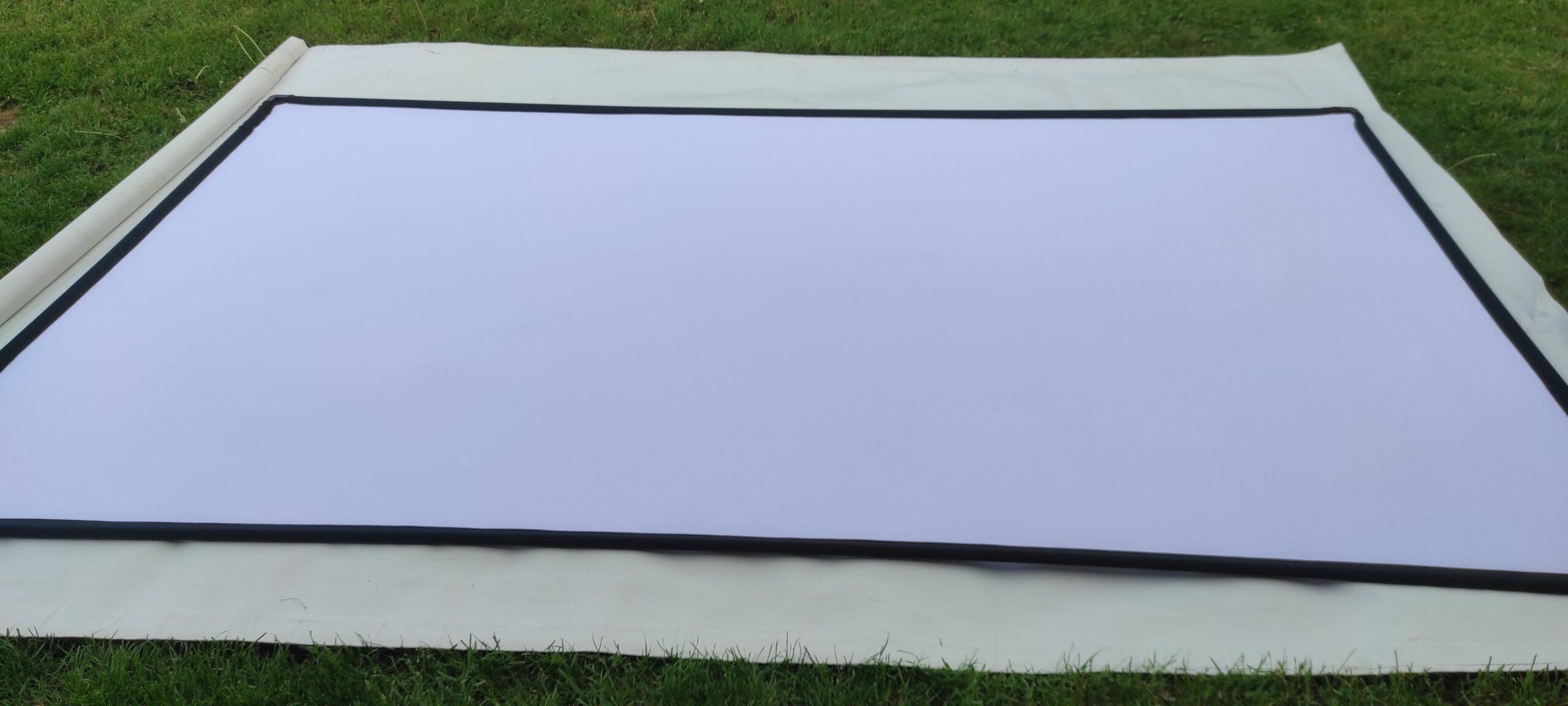 Kino velké…. 150‘‘ naše největší mobilní rámové kino na stativech s uhlopříčkou 394 cm, rozměry přepravního vaku jsou: 115cm x 22cm x 12cm. Hmotnost 4,5kg.